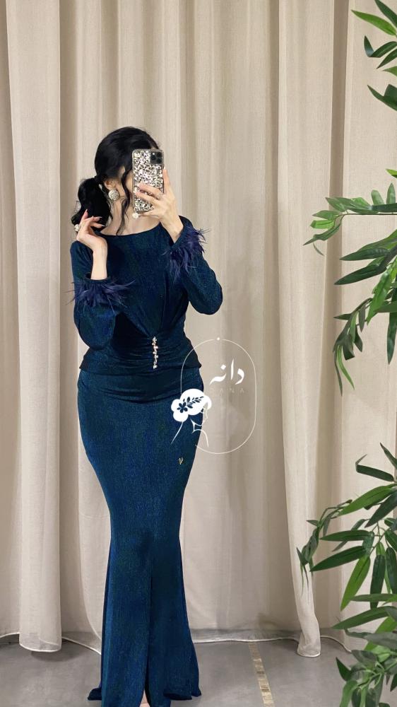تميزي بإطلالة آسرة لا تُنسى مع فستان تركواز غامق بأكمام الريش الجذاب! تصميمه الأنيق وخامته الفاخرة يضفيان عليك لمسة فخمة تعكس جمالك بكل ثقة
