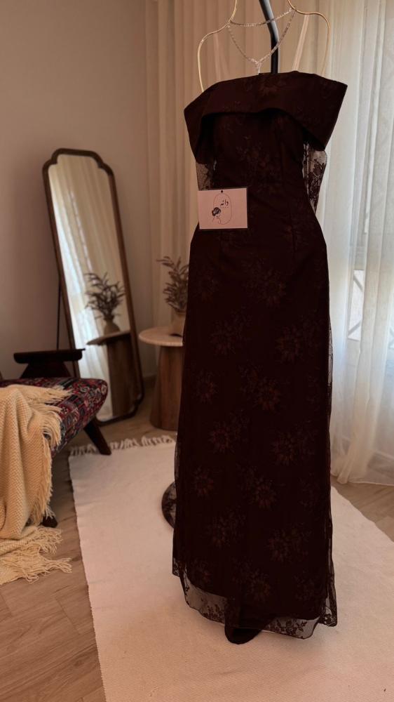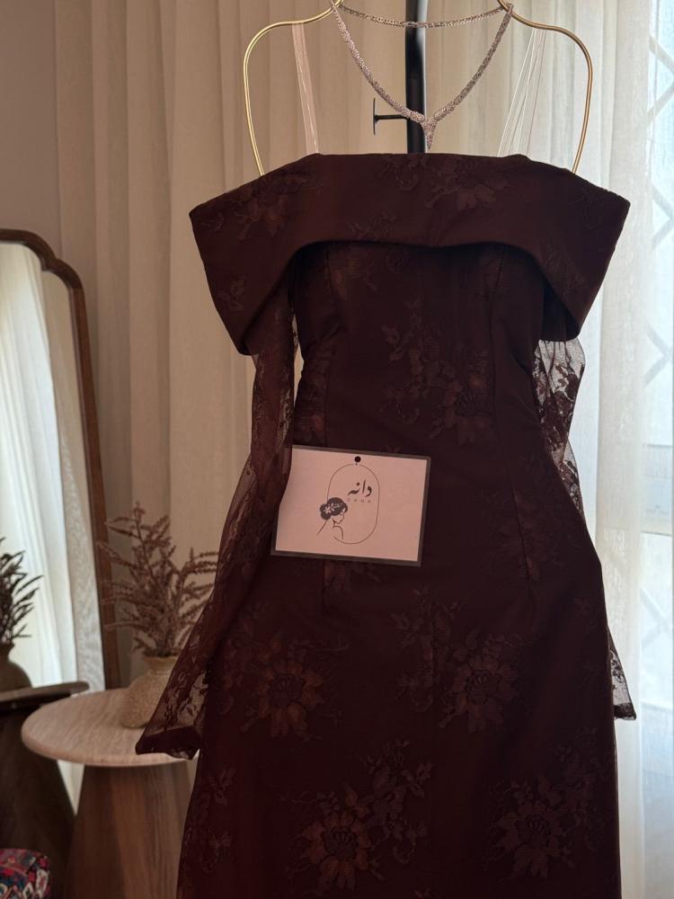 فستان ناعم بني دانتيل طويل بتصميم أنثوي ساحر ولمسة فخمة تليق بكل ذوق راقٍ. مصنوع من دانتيل فاخر مبطن بخامة باربي ناعمة تعطي راحة وأناقة في نفس الوقت.